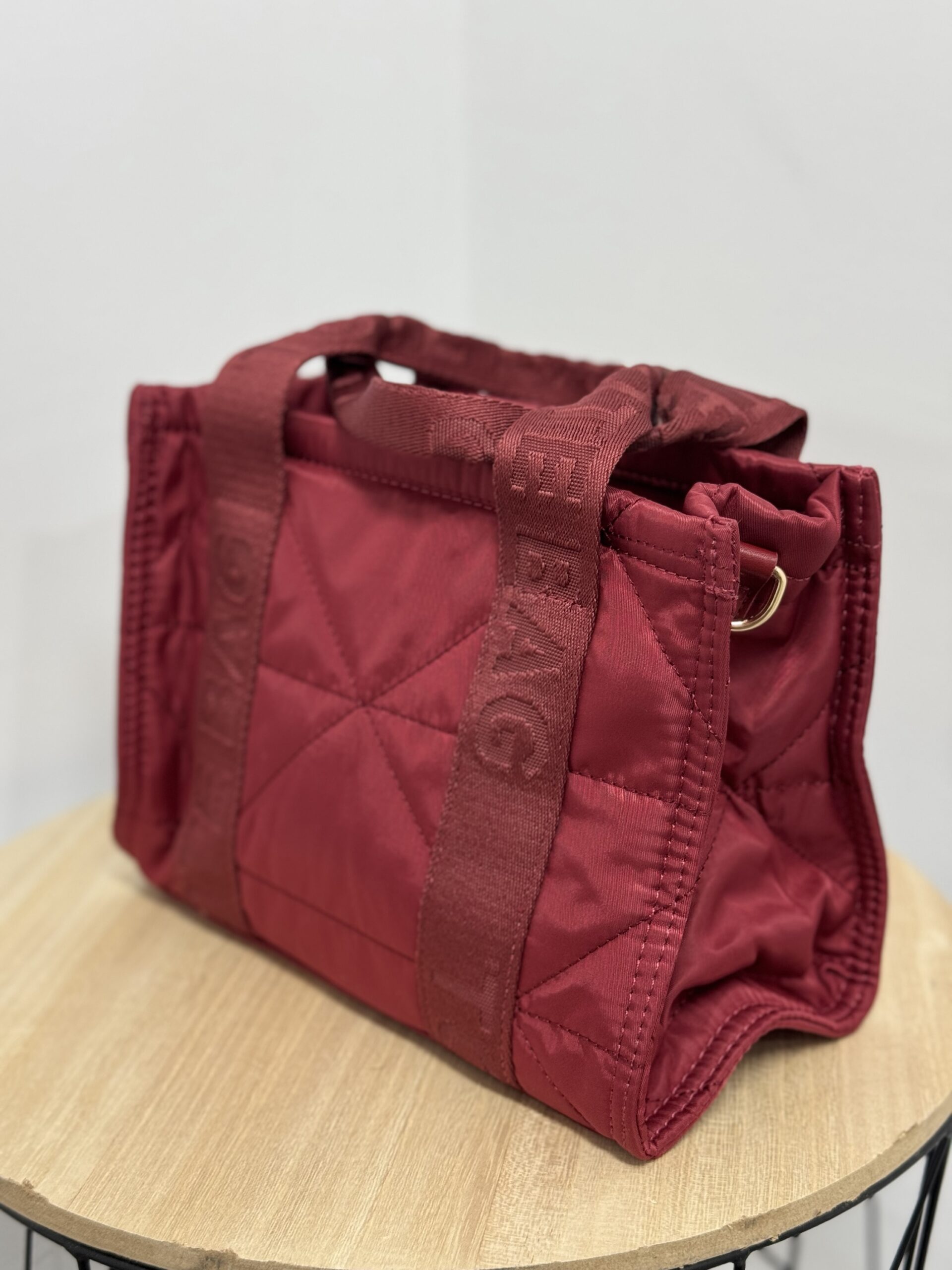 Un diseño moderno y versátil que se adapta a cualquier ocasión. Su estilo acolchado con costuras en patrón geométrico lo convierte en un accesorio práctico y elegante.
