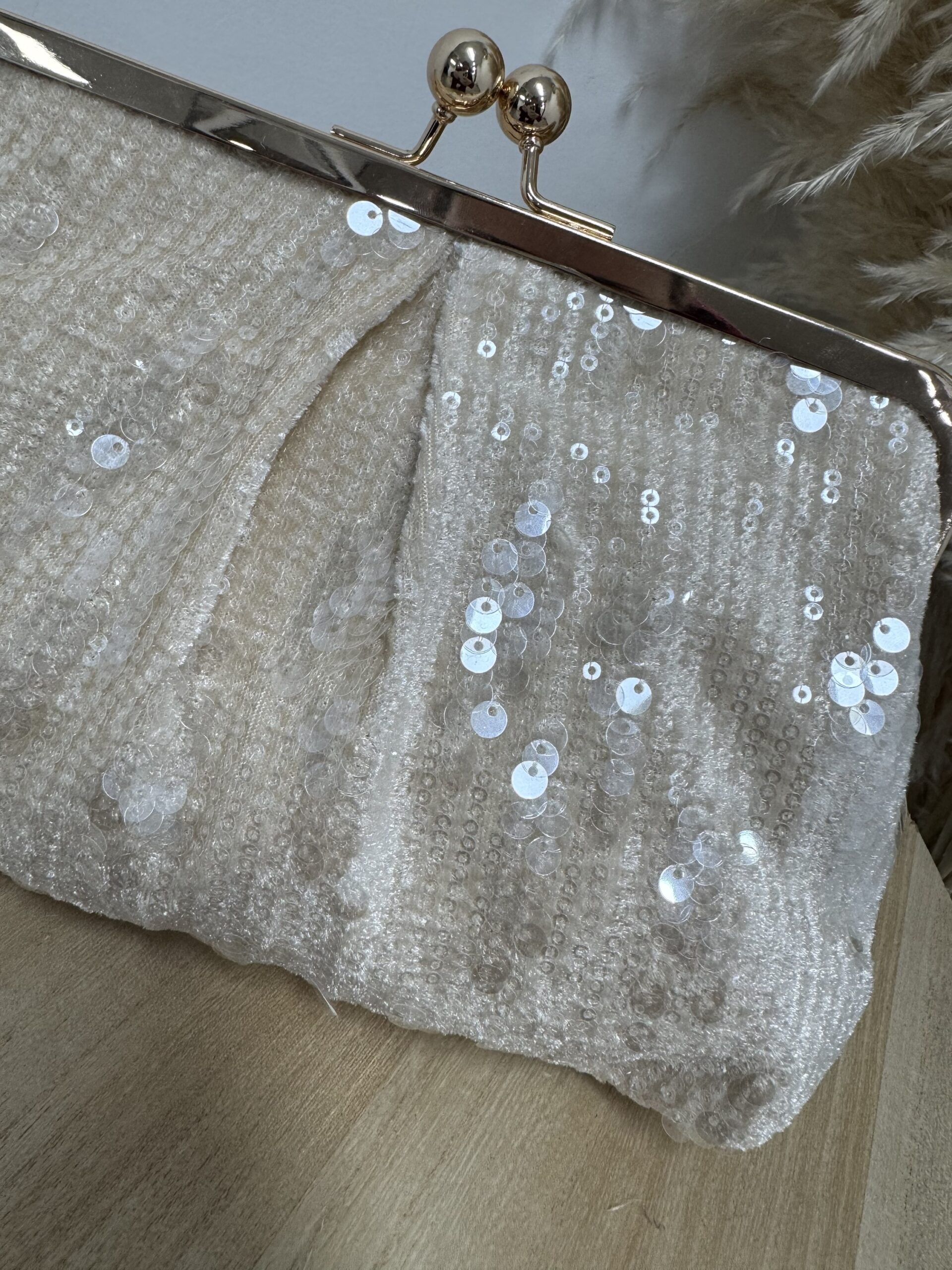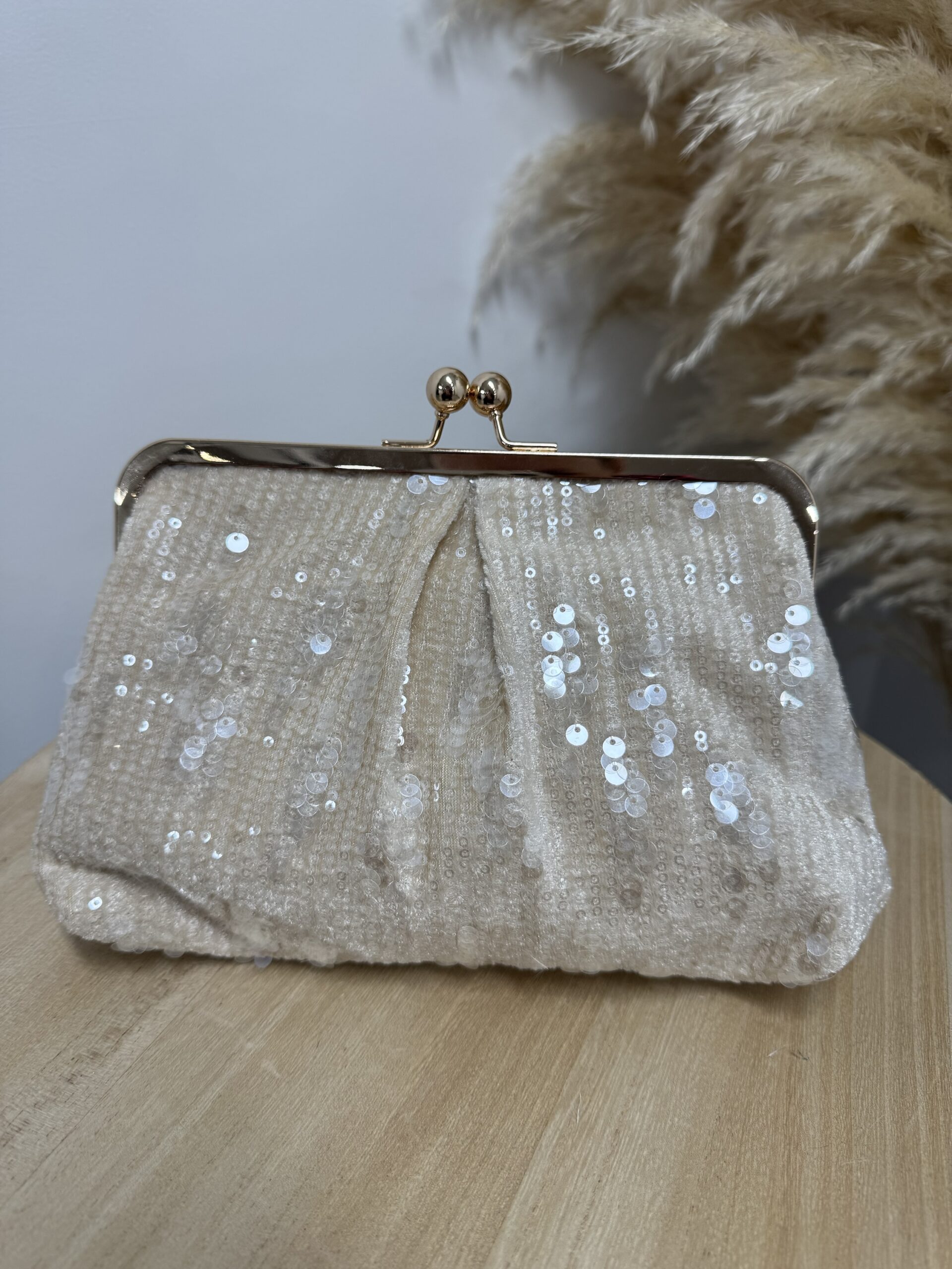 CARTERA LENTEJUELA BEIGE cantidad