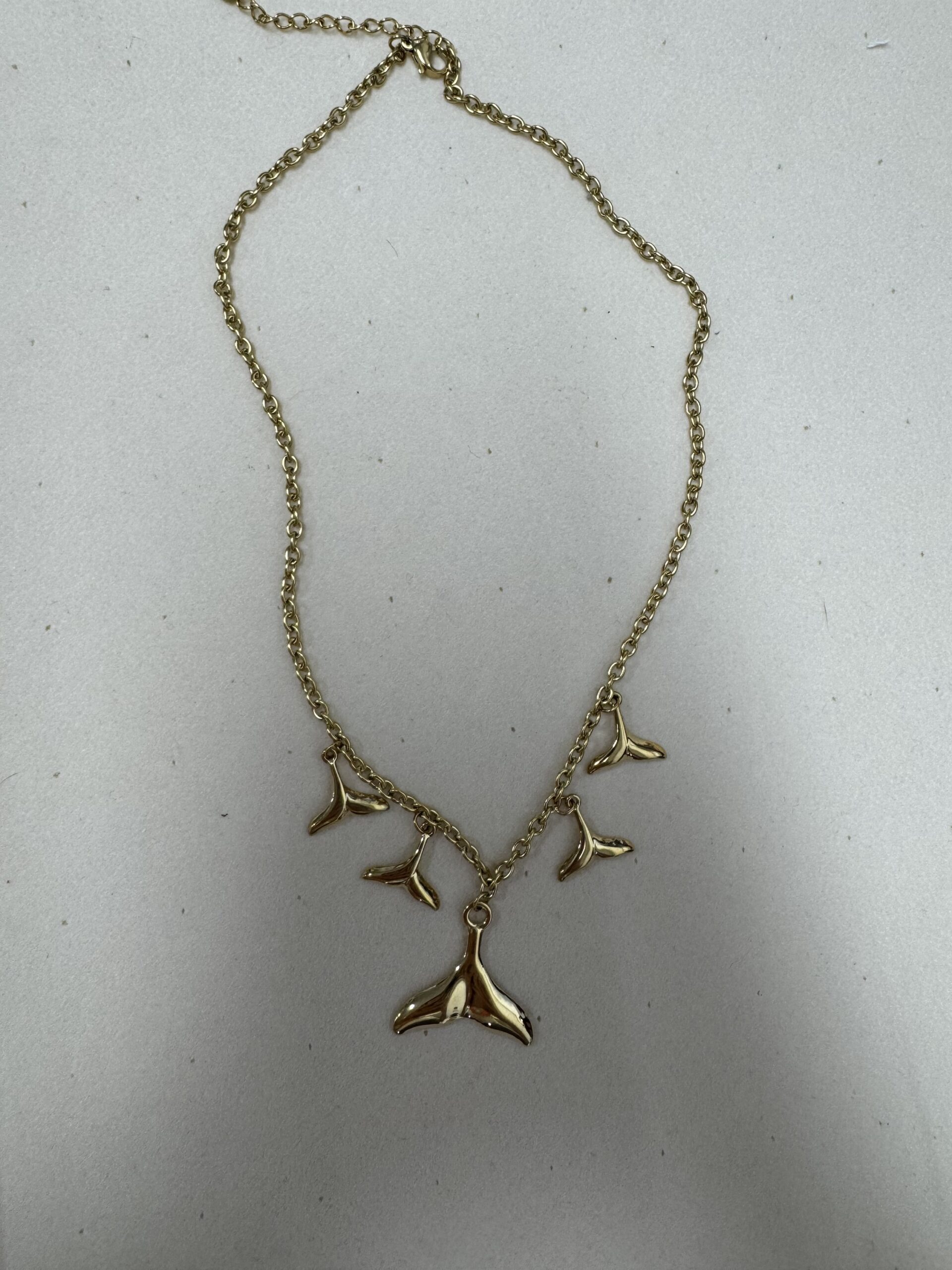 Collar dorado con dijes de cola de ballena