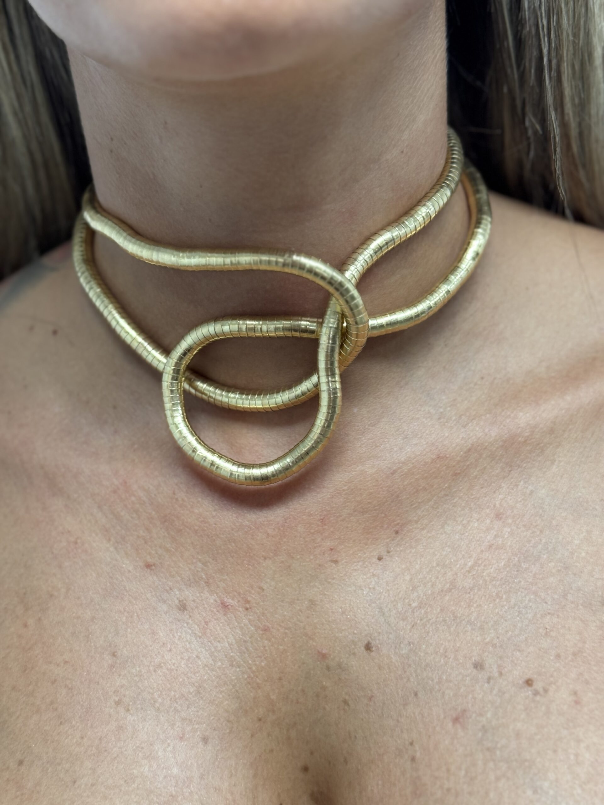 Un accesorio versátil y moderno que no puede faltar en tu colección. Este collar está diseñado con un estilo flexible y ajustable, lo que te permite usarlo de diferentes formas: