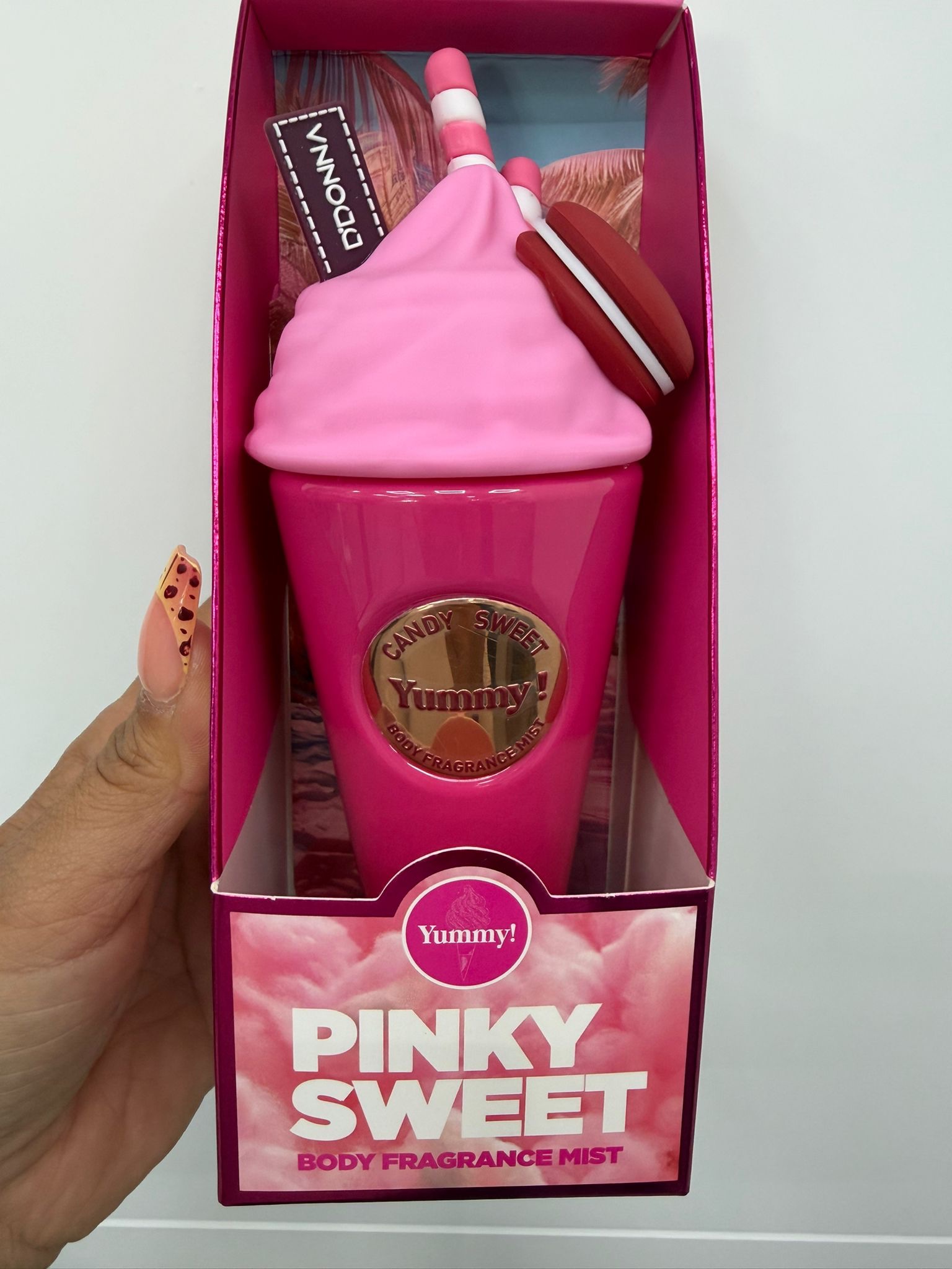 Déjate envolver por la dulzura irresistible de Pinky Sweet, una bruma corporal tan deliciosa como su diseño. Inspirada en el icónico aroma tipo Candy, esta fragancia combina notas golosas y femeninas que evocan un auténtico capricho dulce.