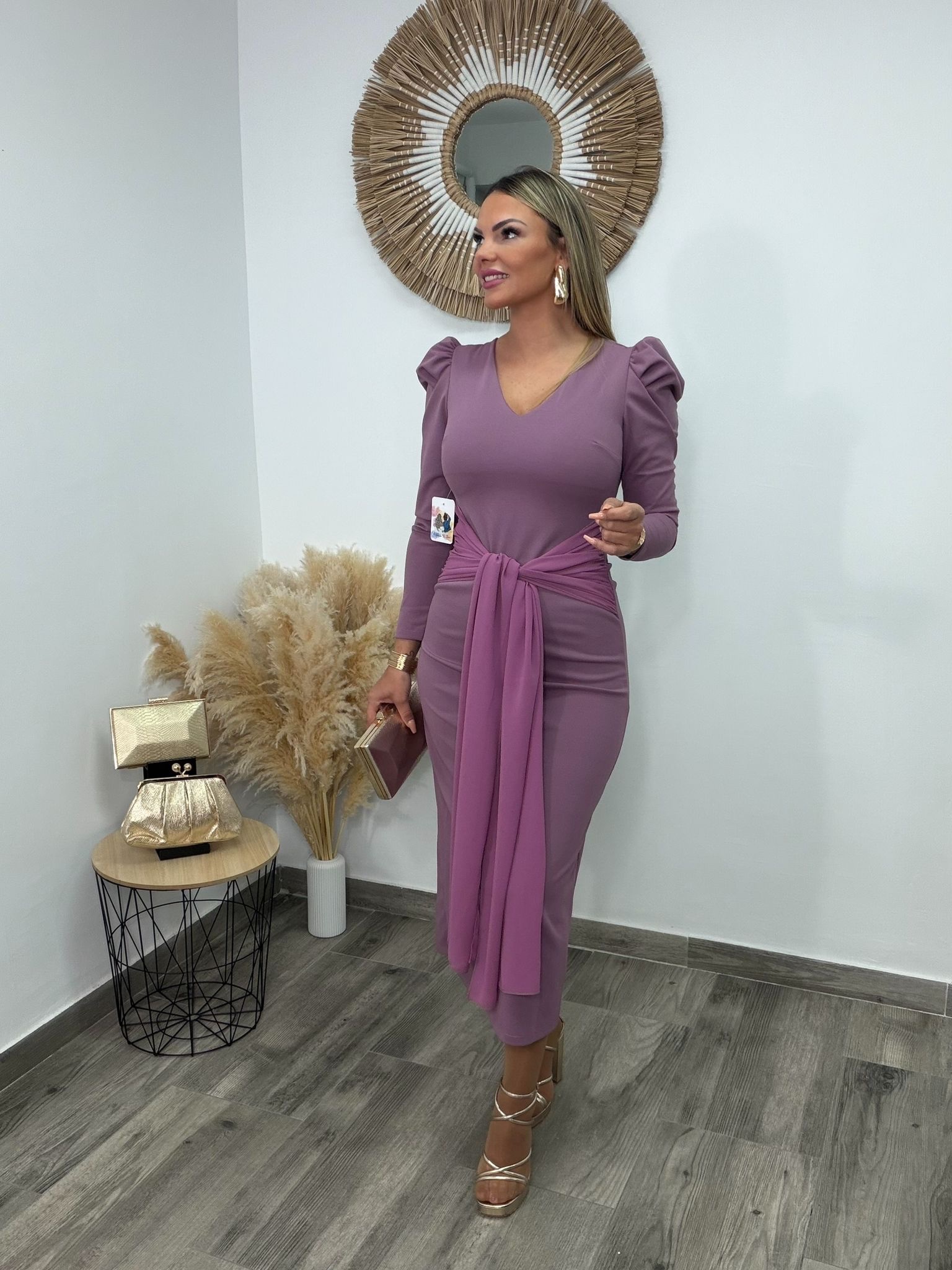 Elegancia y sofisticación en cada detalle. Este vestido midi confeccionado en punto crepé es la definición perfecta de feminidad y estilo atemporal.