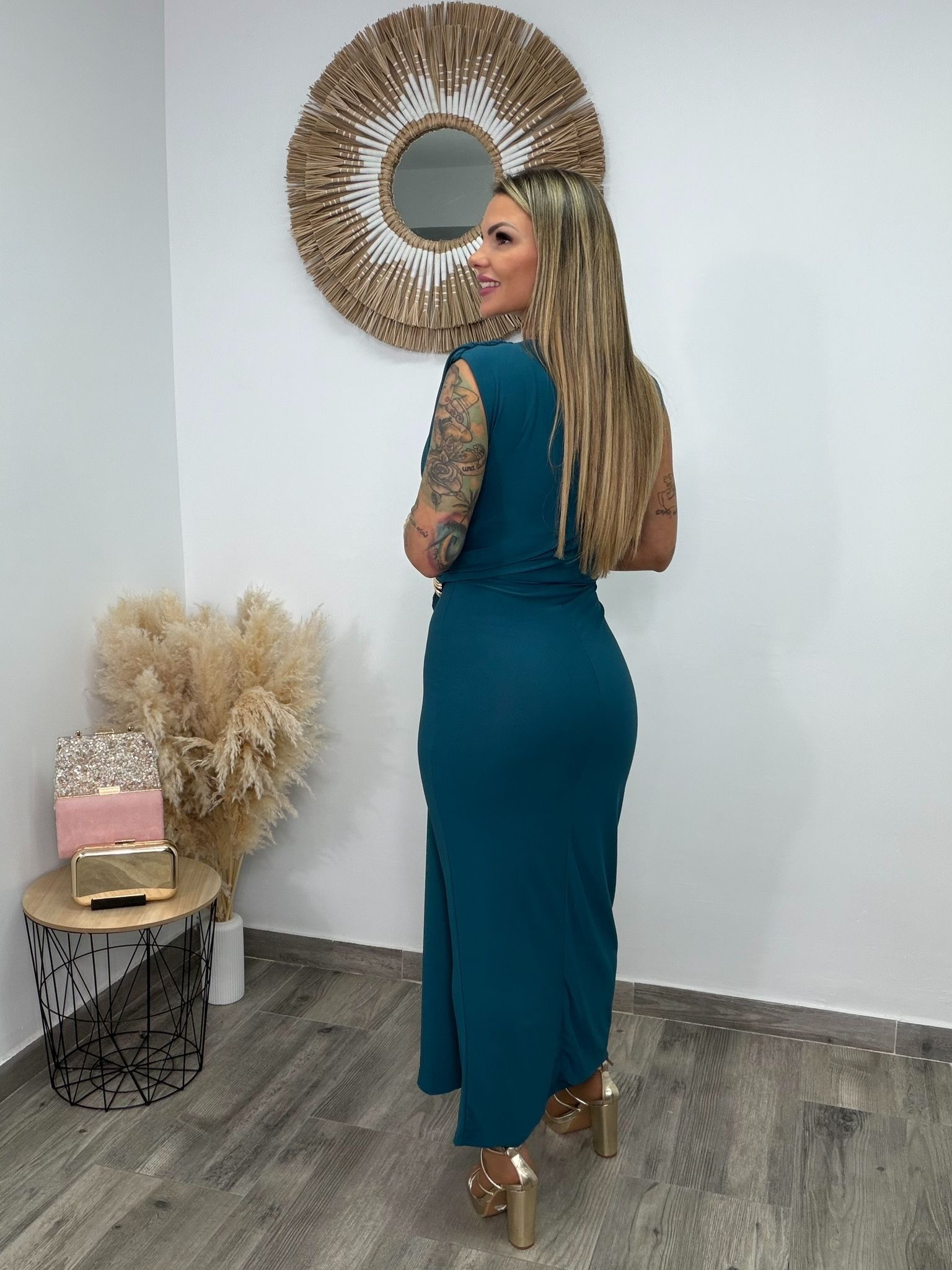 VESTIDO CLAUDIA PETROLEO SIN MANGAS