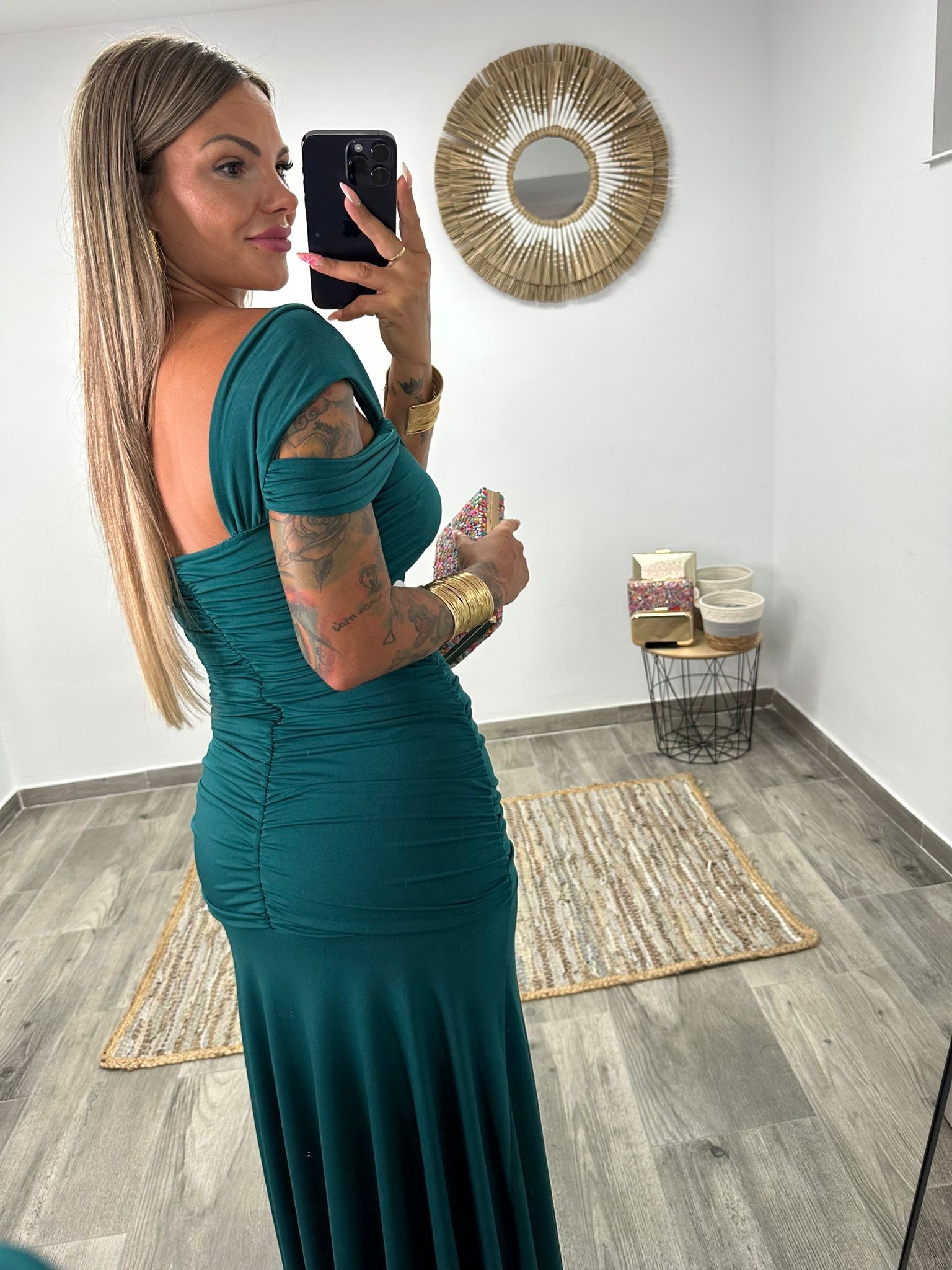 Un vestido pensado para resaltar las curvas con glamour y comodidad, ideal para ser la protagonista en cualquier ocasión especial.