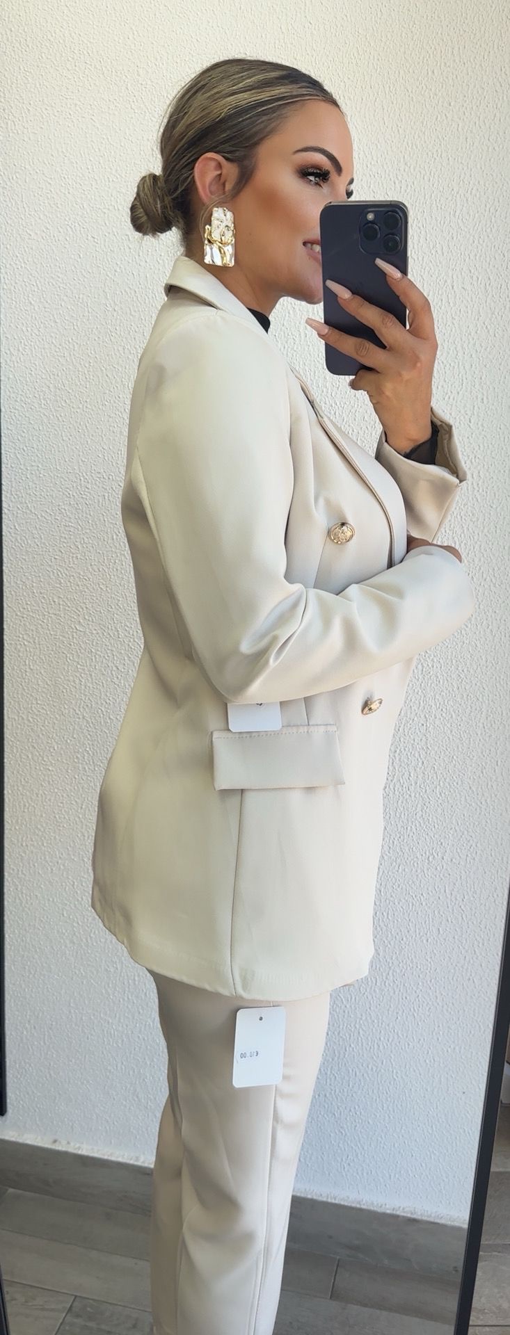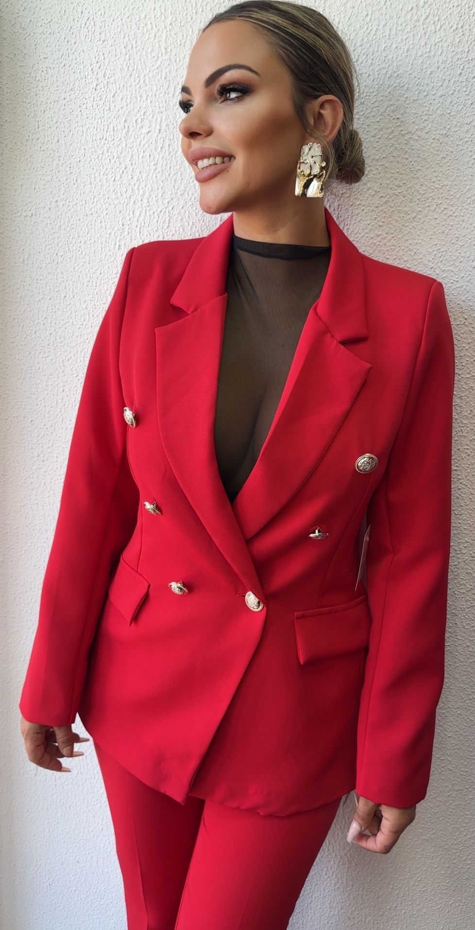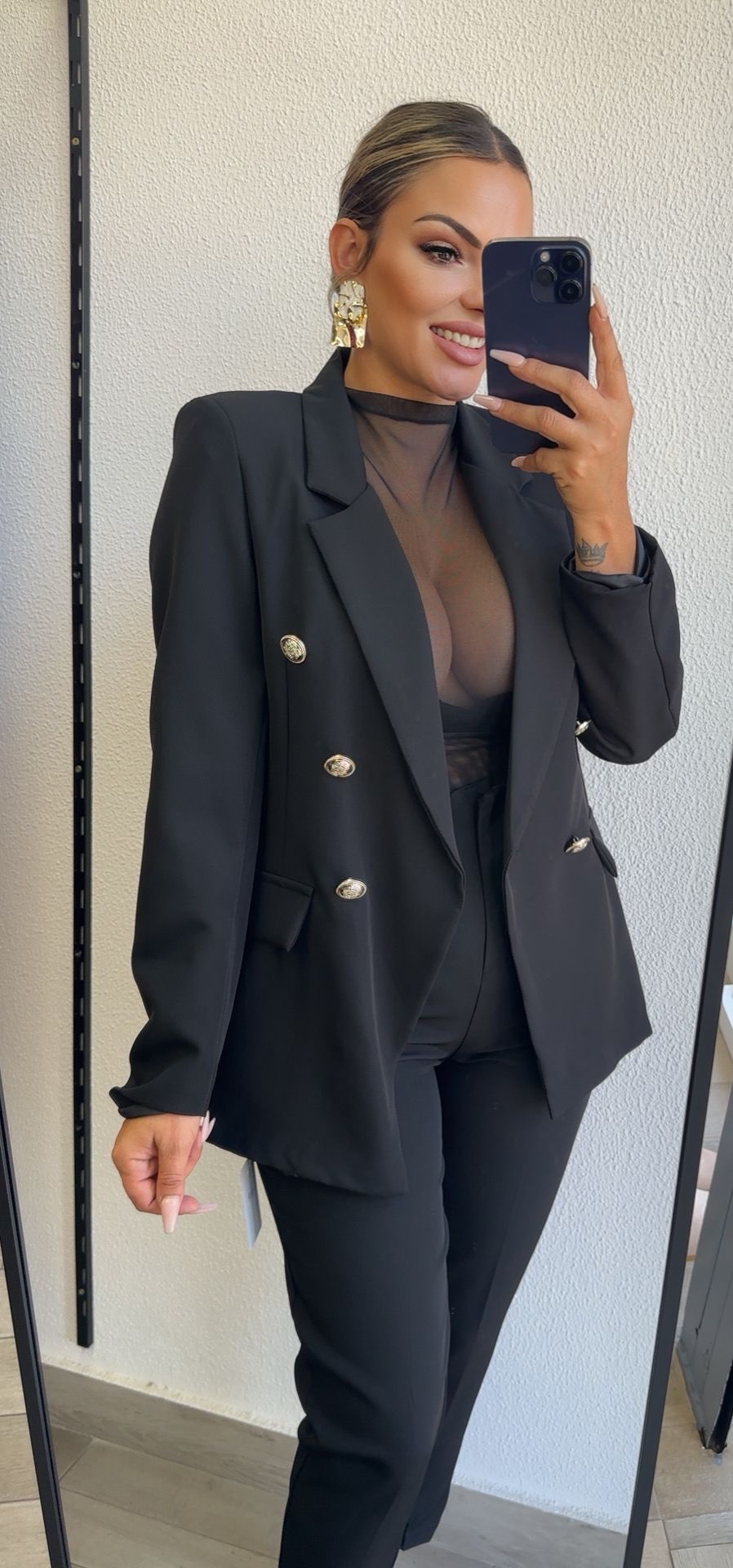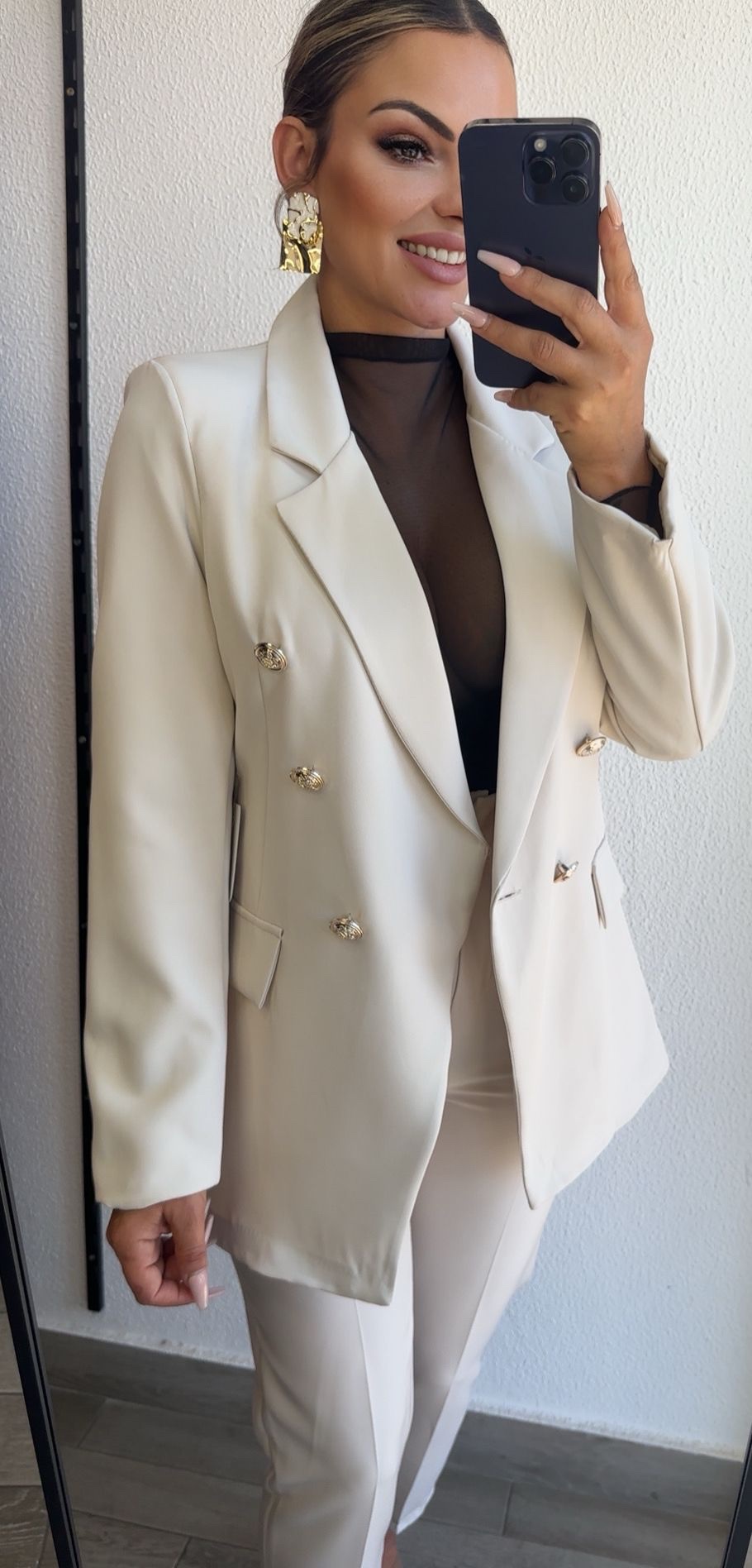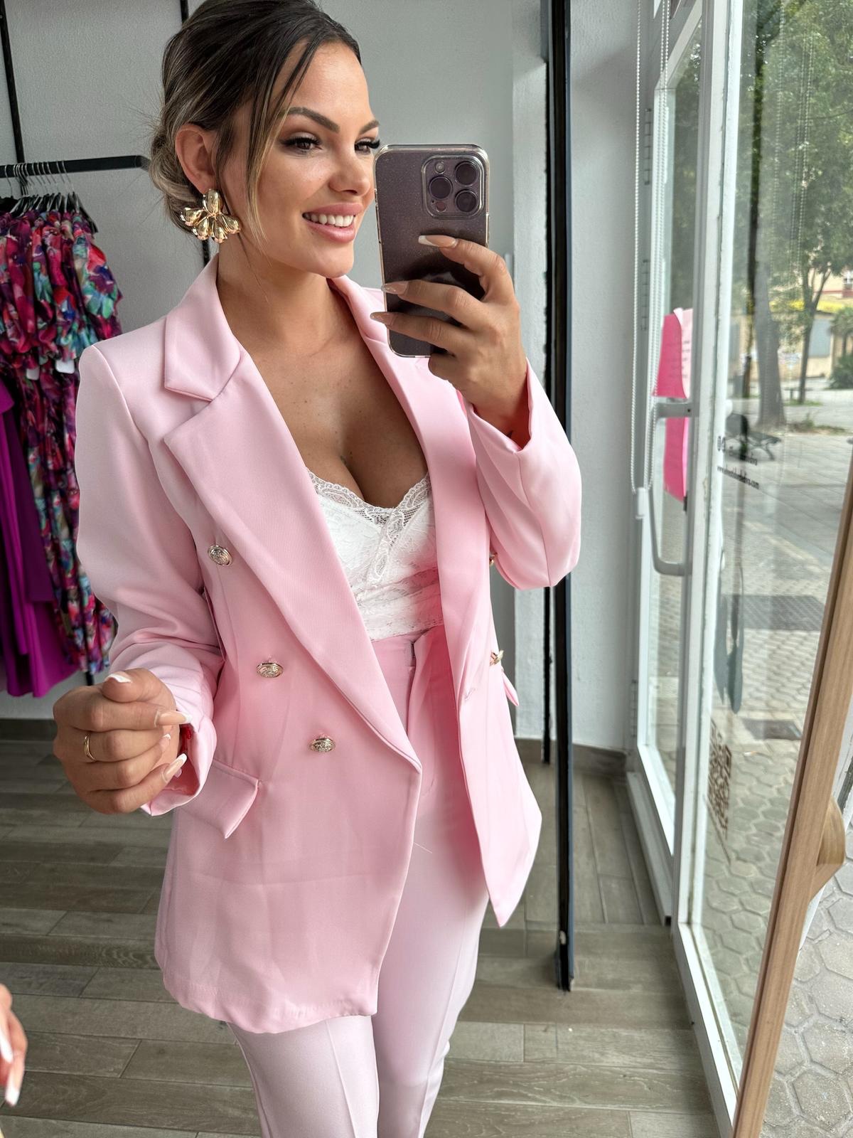 Chaqueta americana, con pinzas en la parte de la cintura, para acentuarla mas, vienen con hombreras, forrada por dentro y los botones en dorado.