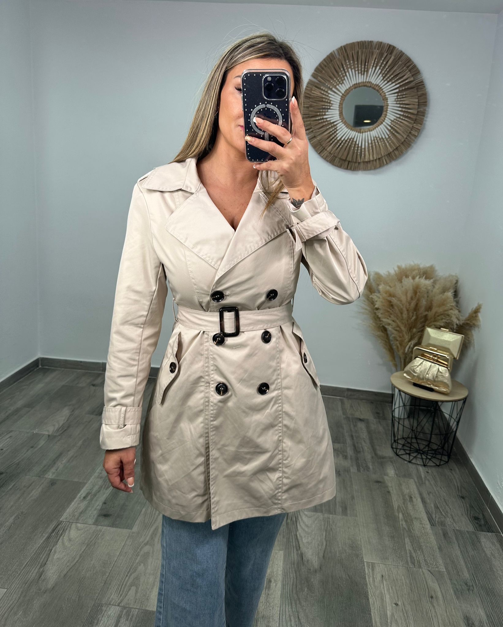 Gabardina clásica de corte elegante, diseñada para aportar estilo y sofisticación a cualquier look. Confeccionada en un tejido ligero, resistente y de alta calidad, es ideal para entretiempo. Su diseño cruzado con doble botonadura y cinturón ajustable permite entallar la cintura y realzar la silueta, ofreciendo un ajuste favorecedor. Cuenta con solapas amplias, bolsillos funcionales y un acabado cuidado en cada detalle. Una prenda atemporal, versátil y perfecta para elevar tanto outfits casuales como más formales