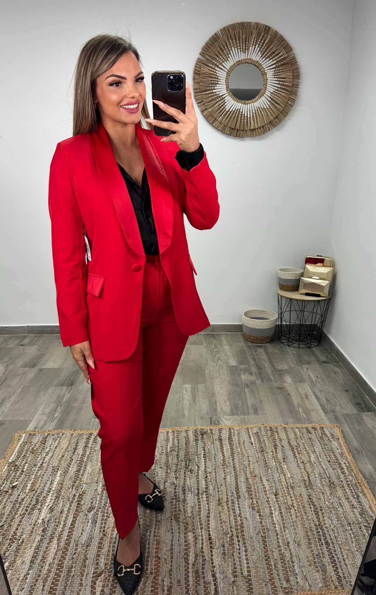 Este traje de chaqueta es la combinación perfecta entre elegancia y modernidad. Su diseño estructurado realza la figura, mientras que sus detalles en raso aportan un toque sofisticado y distinguido que lo convierte en una prenda ideal para eventos especiales, reuniones o looks más formales.